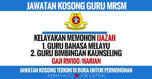 Jawatan Kosong Guru Mrsm 2017 : Maktab rendah sains mara atau mrsm adalah sekolah berasrama penuh yang dibina oleh mara hampir di setiap negeri di malaysia dan sehingga kini terdapat 54 buah mrsm di seluruh malaysia.. Permohonan guru sambilan mrsm / maktab rendah sains mara. Iklan permohonan jawatan kosong terkini di bawah merupakan maklumat kekosongan jawatan yang ditawarkan oleh majikan terlibat. Jawatan kosong kerajaan dan jawatan kosong swasta ogos september 2017 terbaru di malaysia ok? Portal rasmi jawatan kosong dan kerja kosong kerajaan dan swasta malaysia. .kosong guru sambilan mrsm | pihak maktab rendah sains mara mempelawa kepada seluruh warganegara malaysia yang berkelayakan dan berminat untuk mengisi kekosongan jawatan sebagai guru kadar upah :